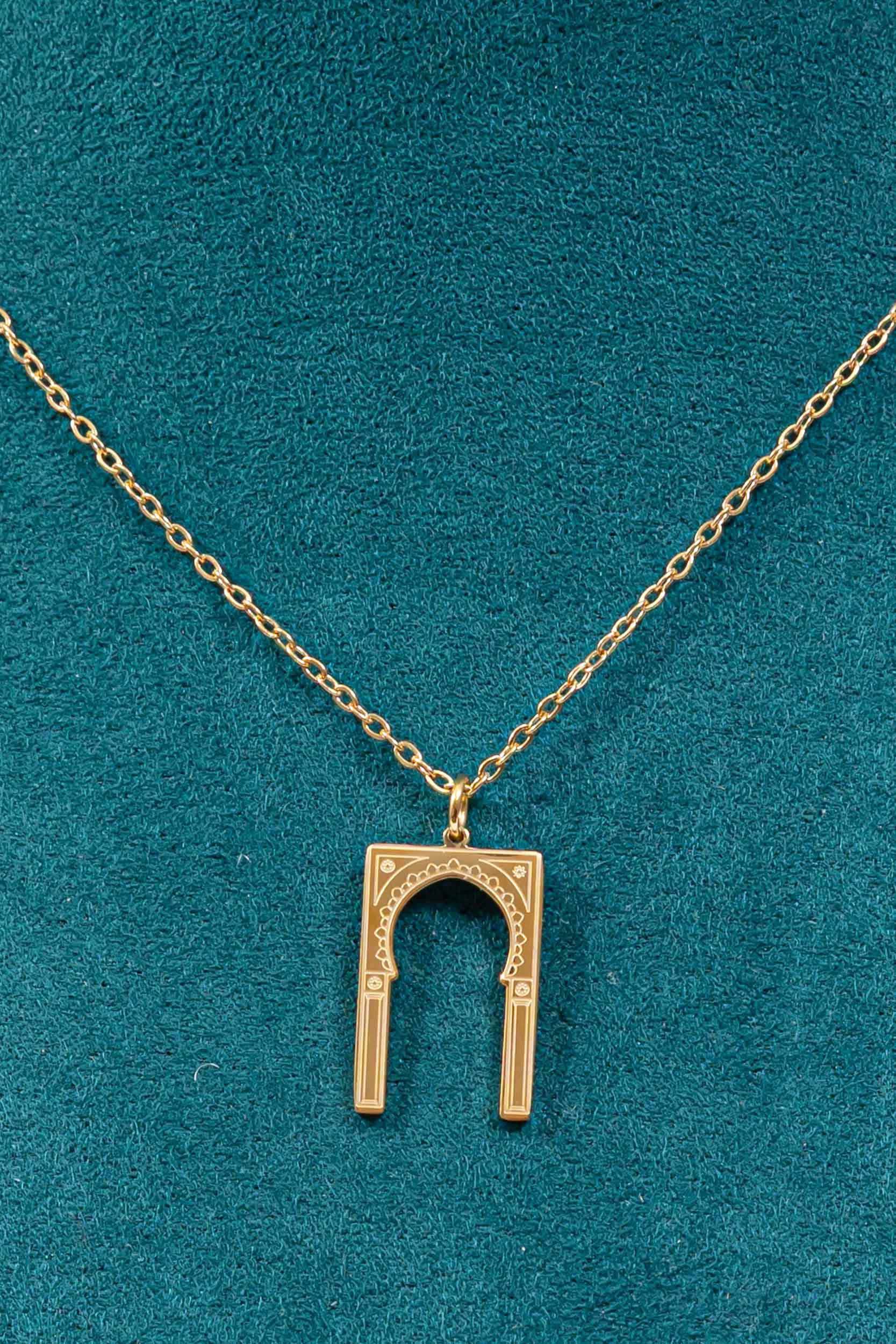Capturez la chaleur et la lumière des anciennes médinas avec ce bijou solaire aux motifs délicats.<br><br><b>Matériaux :</b> Acier inoxydable, Doré à l’Or fin 18 carats.